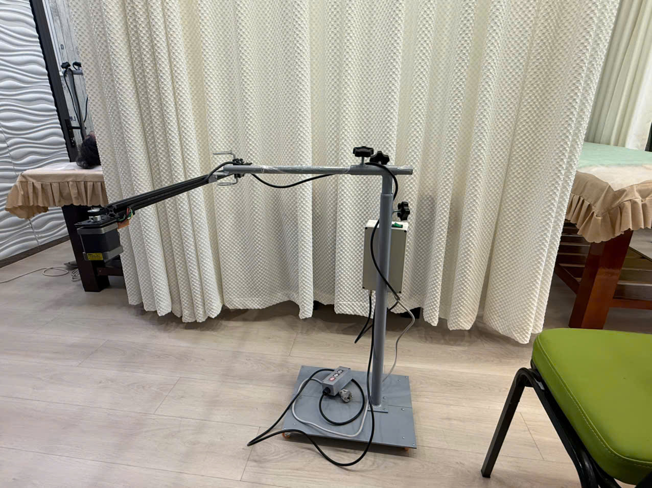 - Chiều cao tối đa: 120cm, giúp dễ dàng điều chỉnh theo yêu cầu và vị trí tối ưu cho liệu pháp.