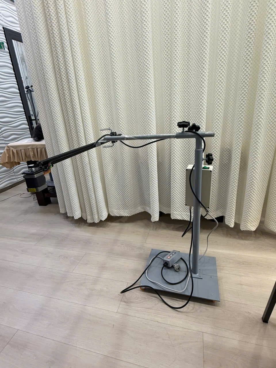 - Chiều cao tối đa: 120cm, giúp dễ dàng điều chỉnh theo yêu cầu và vị trí tối ưu cho liệu pháp.