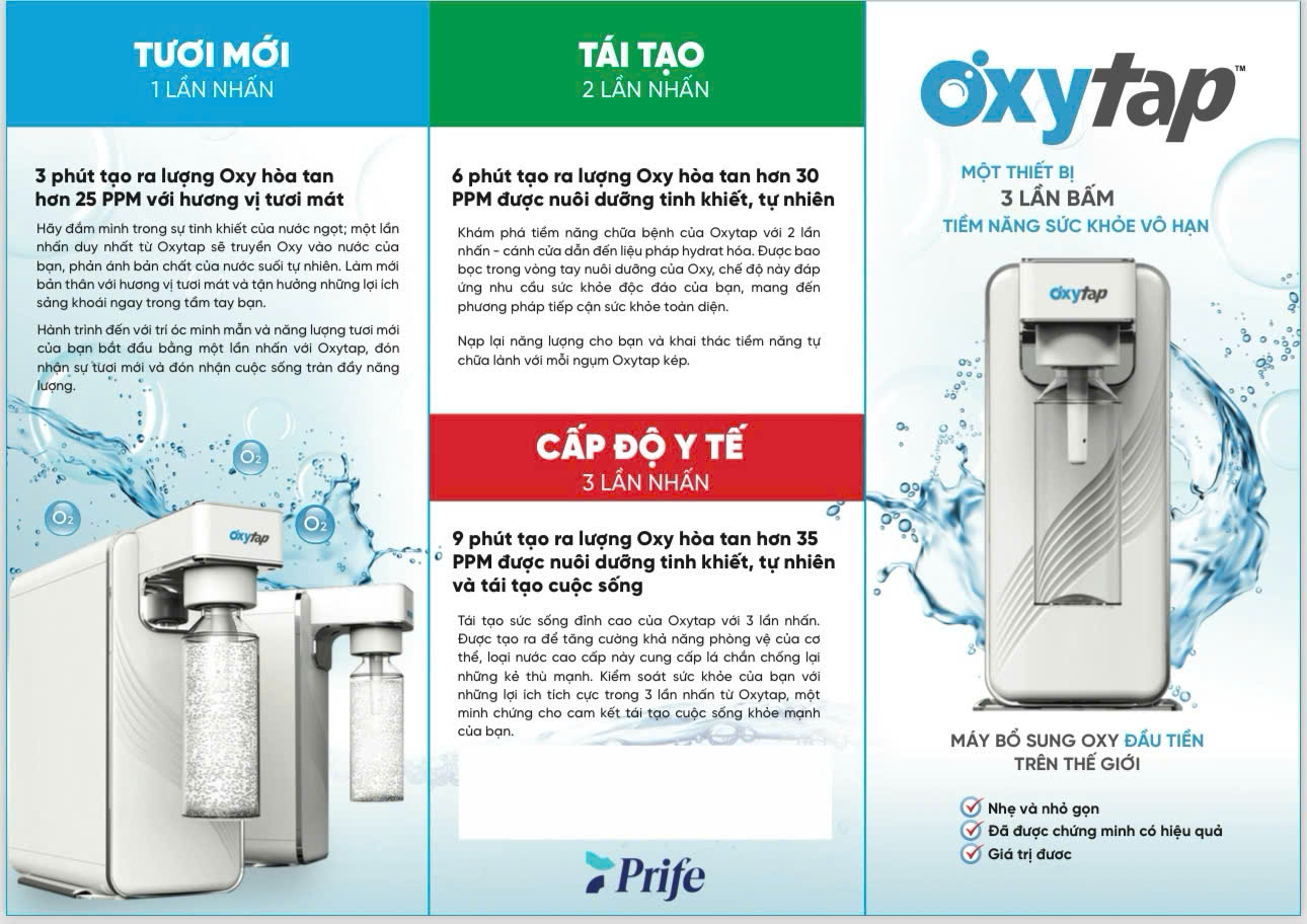 OxyTap – Prife ra đời như một bước tiến công nghệ đột phá, giúp bạn bổ sung oxy tinh khiết qua nước uống – hình thức tự nhiên, an toàn và tiện lợi nhất hiện nay.